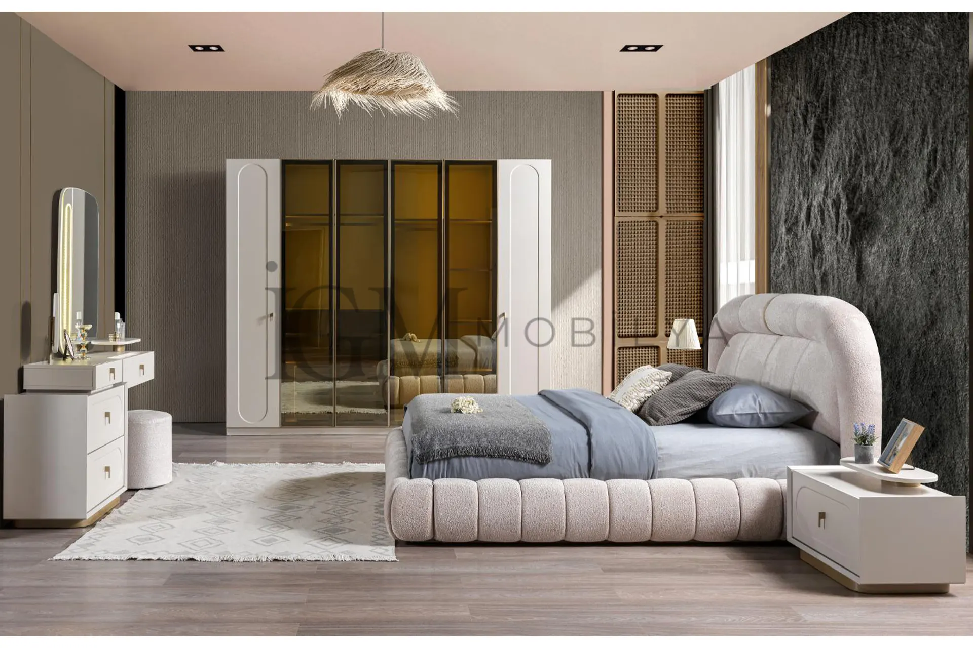| Takım İçeriği | -1 adet Karyola ve Başlığı -1 adet Dolap -2 adet Komodin -1 adet Şifonyer |